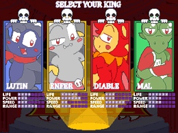Excitement filled the sulfur soaked air of Hell, as a tournment would soon be held to decide the new ruler of it's sweltering domain! Unfortunately, during the preperation for the ranked fightings, the Evil and Squiggly Lord Xenu descended down from his spacey location, only to abduct one of the competitors close friend, Ange! Join Lutin, Enfer, Diable, and Mal as they bash 'n dash their way through various locations to track down Lutin's captured commrade, and hopefully make it back in time to be crowned...